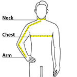 | Arm | 30 - 30 3/4 | 30 3/4 - 31 1/2 | 31 1/2 - 32 | 32 1/2 - 33 | 32 - 32 1/2 | 33 - 33 3/8 | 33 3/8 - 33 3/4 | 33 3/4 - 34 1/2 |